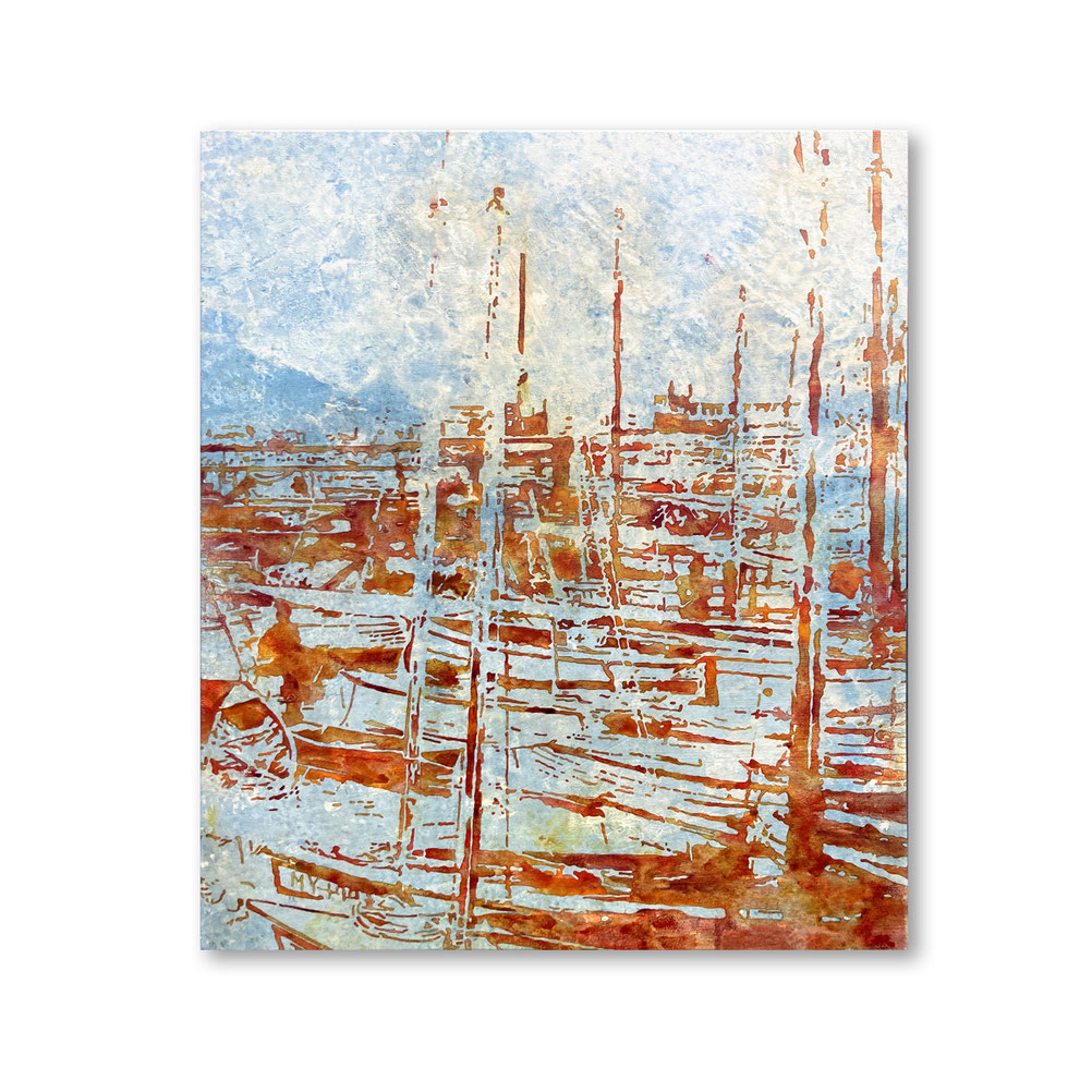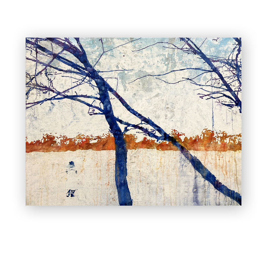 Tusche, Aquarell, Rost und Acryl auf Leinwand