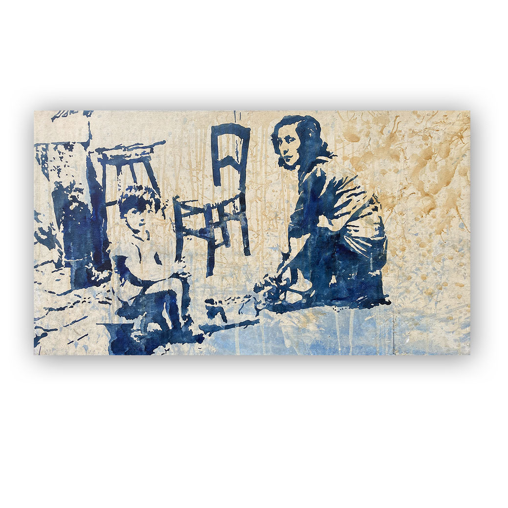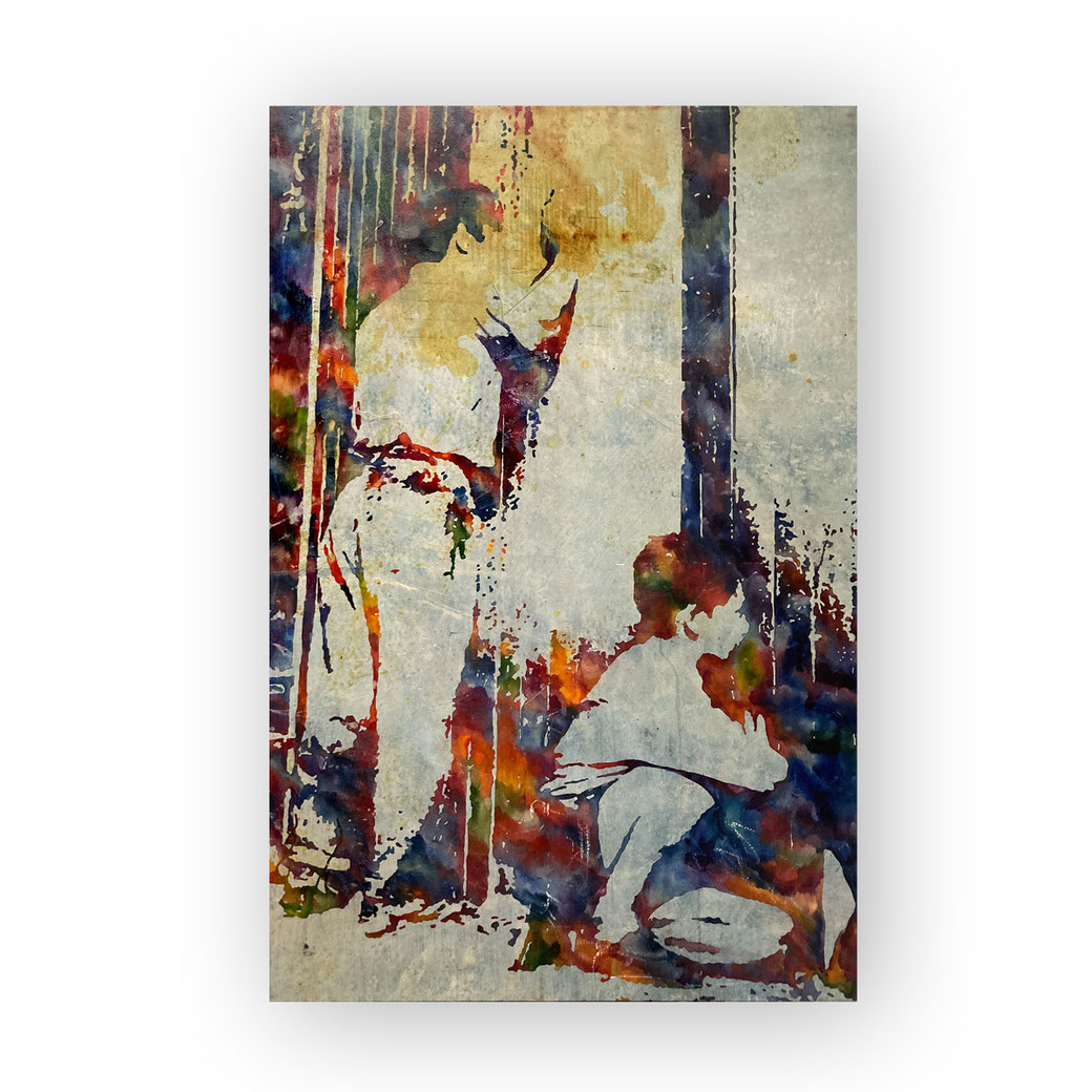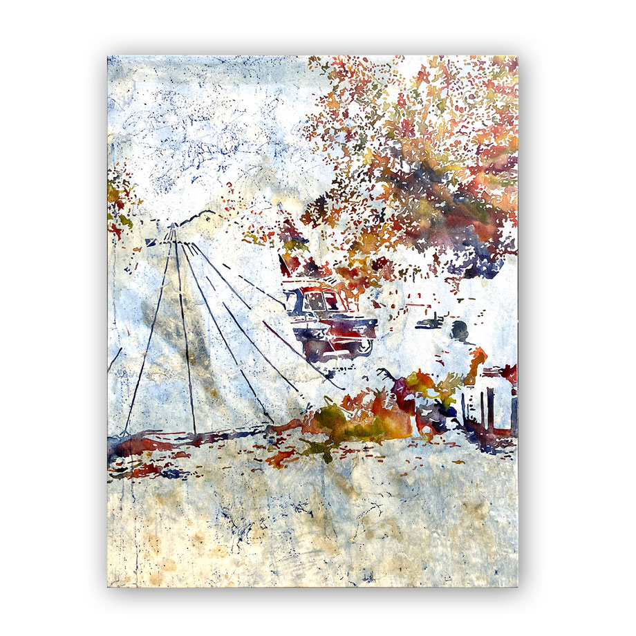 Aquarell, Kaffee und Mischtechnik auf Leinwand