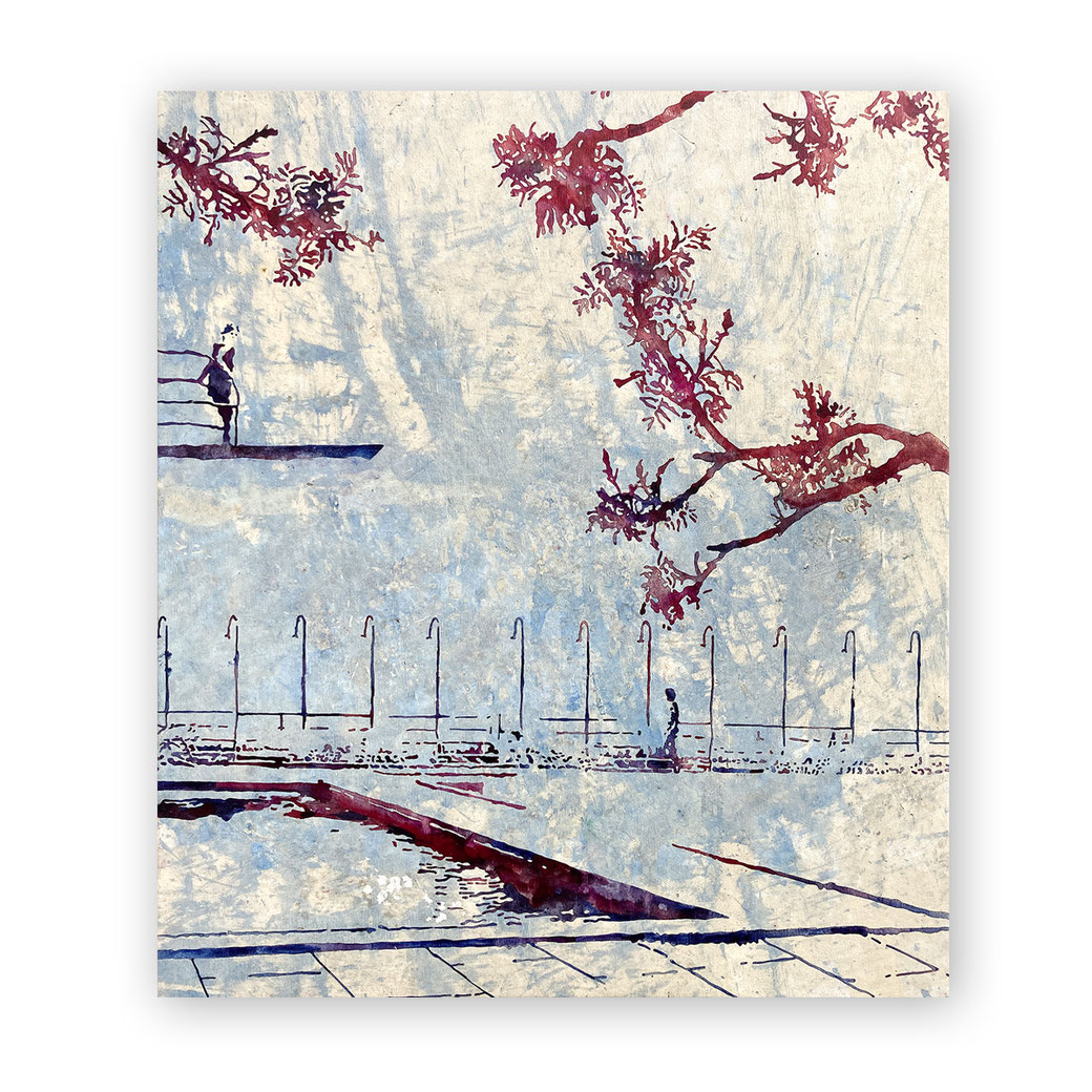 Aquarell, Tusche, Rost und Acryl auf Nessel.